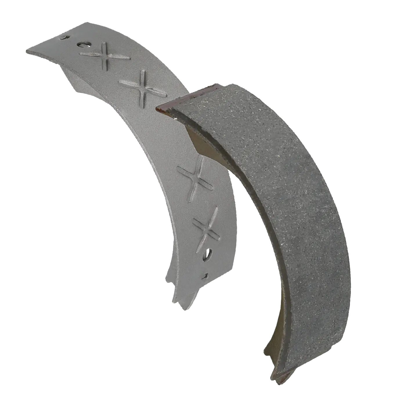 X-shaped recesses in the steel. This creates a strong bond between the lining and the shoe, providing superior adhesion and long-lasting durability even under demanding conditions and high temperatures.